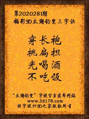 福彩第2020281期3d太湖字谜:穿长袍,挑扁担,光喝酒,不吃饭