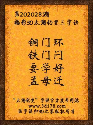 专家湘西老怪解3d第2020285期太湖字谜三字诀