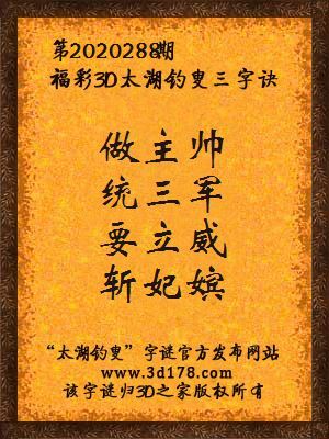 福彩第2020288期3d太湖字谜:做主帅,统三军,要立威,斩妃嫔
