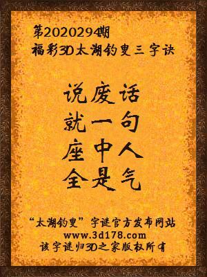 福彩第2020294期3d太湖字谜:说废话,就一句,座中人,全是气
