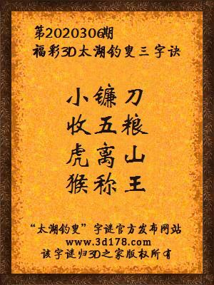 解3d第2020306期太湖字谜: