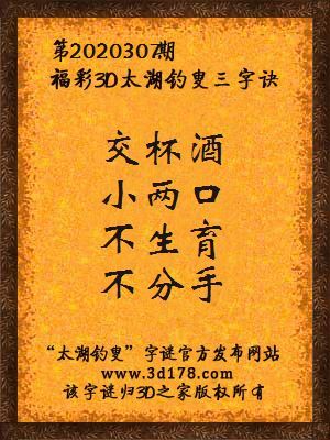 福彩第2020307期3d太湖字谜:交杯酒,小两口,不生育,不分手