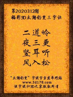 解3d第2020312期太湖字谜:
