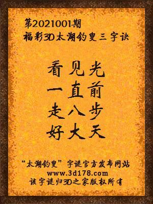 下面开始解3d第2021001期太湖字谜: