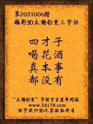 解3d第2021006期太湖字谜: