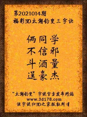 解3d第2021014期太湖字谜: