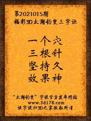 福彩第2021015期3d太湖字谜:一个穴,三根针,坚持久,效果神