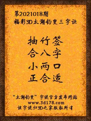 下面开始解3d第2021018期太湖字谜: