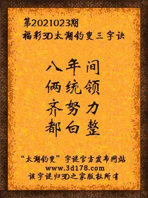 福彩第2021023期3d太湖字谜:八年间,俩统领,齐努力,都白整