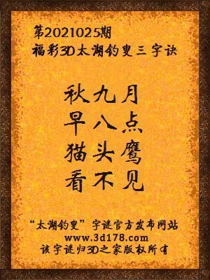 今日3d太湖字谜总汇_2021025期解太湖字谜