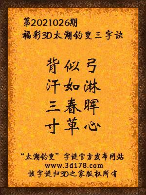 解3d第2021026期太湖字谜: