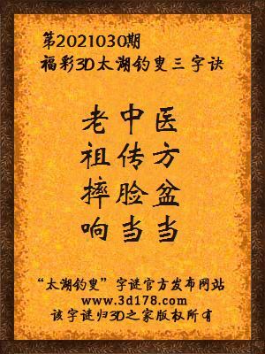 福彩第2021030期3d太湖字谜:老中医,祖传方,摔脸盆,,响当当
