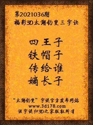 福彩第2021036期3d太湖字谜:四王子,铁帽子,传给谁,嫡长子