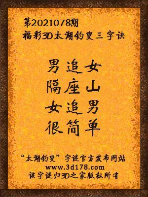 今日3d太湖字谜总汇_2021078期解太湖字谜