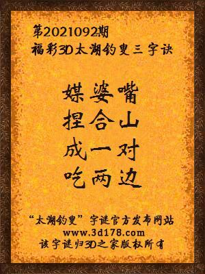 今日3d太湖字谜总汇_2021092期解太湖字谜