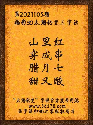下面开始解3d第2021105期太湖字谜: