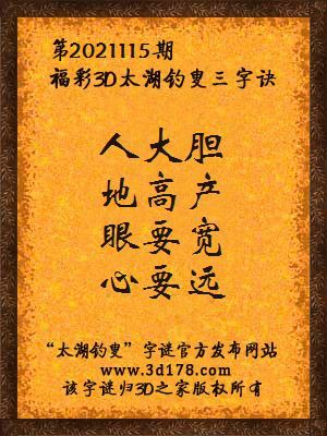 福彩第2021115期3d太湖字谜:人大胆,地高产,眼要宽,心要远
