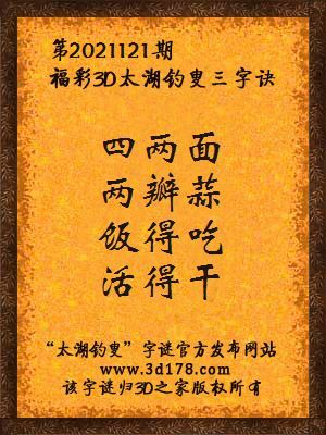 解3d第2021121期太湖字谜: