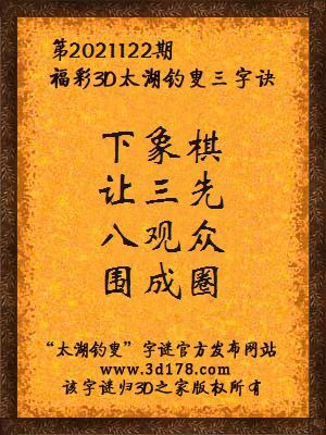 福彩第2021122期3d太湖字谜:下象棋,让三先,八观众,围成圈