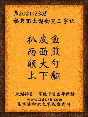 福彩第2021123期3d太湖字谜:扒皮鱼,两面煎,颠大勺,上下翻