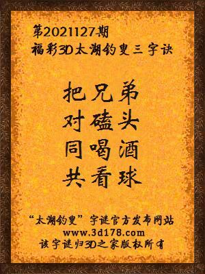 福彩第2021127期3d太湖字谜:把兄弟,对磕头,同喝酒,共看球