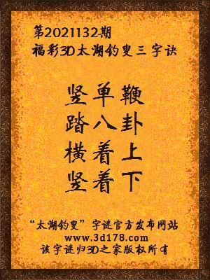 福彩第2021132期3d太湖字谜:竖单鞭,踏八卦,横着上,竖着下