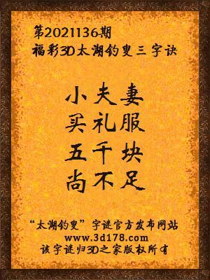 解3d第2021136期太湖字谜:
