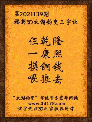 福彩第2021139期3d太湖字谜:仨乾隆,一康熙,摸铜钱,喂狼去