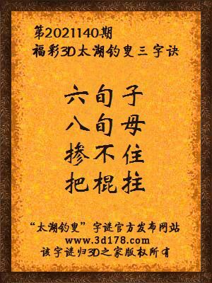 福彩第2021140期3d太湖字谜:六旬子,八旬母,掺不住,把棍拄