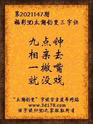 下面开始解3d第2021147期太湖字谜: