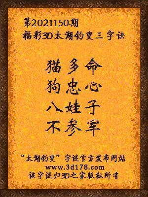 3d第2021150期太湖字谜杰夫哈迪独家解析