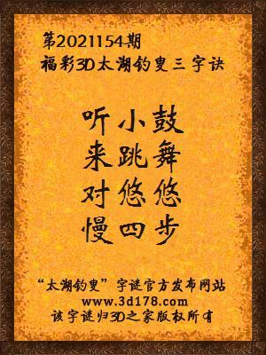 福彩第2021154期3d太湖字谜:听小鼓,来跳舞,对悠悠,慢四步