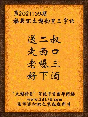 解3d第2021159期太湖字谜: