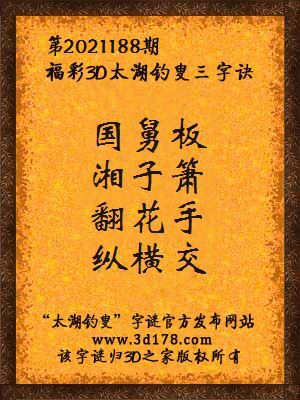 下面开始解3d第2021188期太湖字谜: