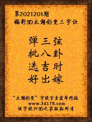 福彩第2021201期3d太湖字谜:弹三弦,批八卦,选吉时,好出嫁