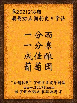 福彩第2021216期3d太湖字谜:一分雨,一分寒,成佳酿,葡萄园
