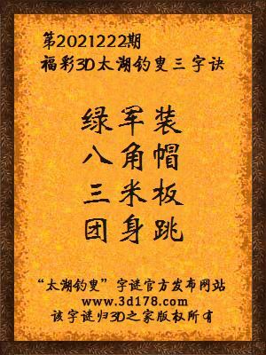今日3d太湖字谜总汇_2021222期解太湖字谜