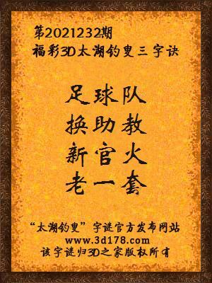 3d第2021232期马后炮解太湖字谜之足球队