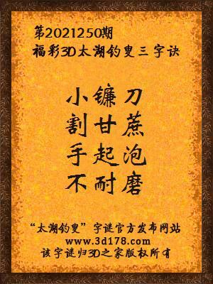 解3d第2021250期太湖字谜: