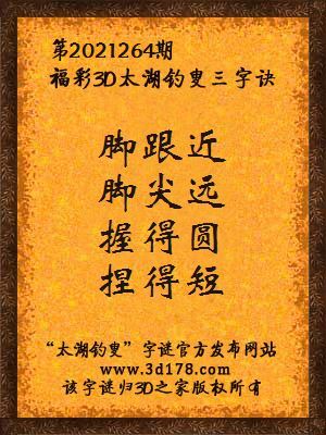 下面开始解3d第2021264期太湖字谜: