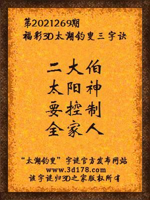 福彩第2021269期3d太湖字谜:二大伯,太阳神,要控制,全家人