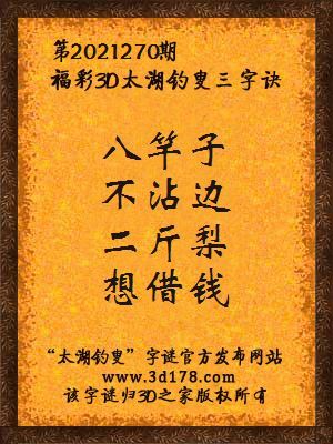 福彩第2021270期3d太湖字谜:八竿子,不沾边,二斤梨,想借钱