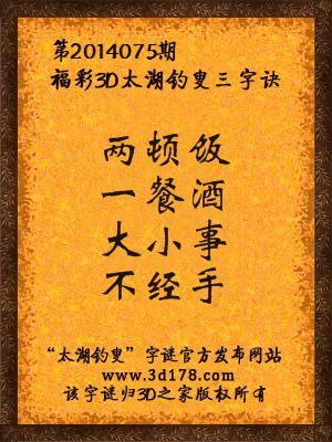 2014年福彩3d第075期太湖钓叟字谜:两顿饭,一餐酒,大小事,不经手