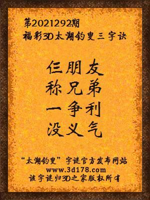 解3d第2021292期太湖字谜: