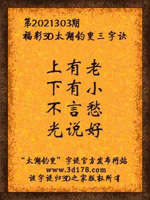 福彩第2021303期3d太湖字谜:上有老,下有小,不言愁,光说好