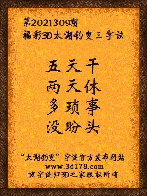 今日3d太湖字谜总汇_2021309期解太湖字谜