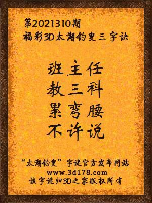 福彩第2021310期3d太湖字谜:班主任,教三科,累弯腰,不许说