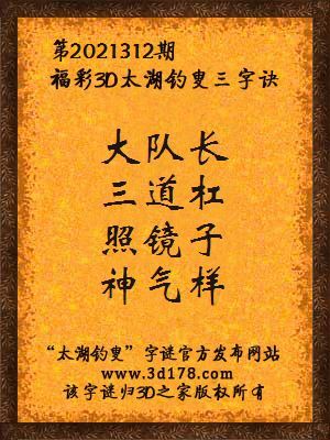3d第2021312期马后炮解太湖字谜之大队长