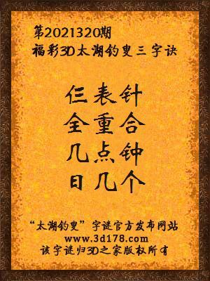 福彩第2021320期3d太湖字谜:仨表针,全重合,几点钟,日几个