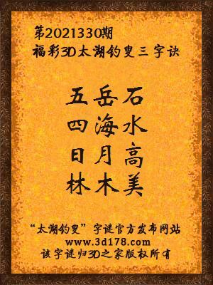 解3d第2021330期太湖字谜: